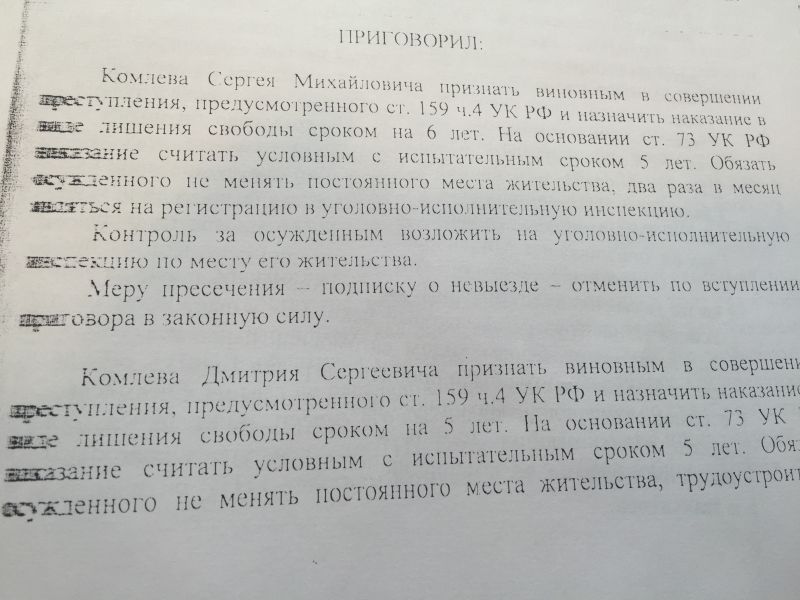 В 2006 году родственников – Дмитрия и Сергея Комлевых осудили за мошенничество в крупном размере – они получили страховку в сумме 1 млн 200 тысяч рублей за аварию, которой не было, а протоколы ДТП оказались подделаны.
